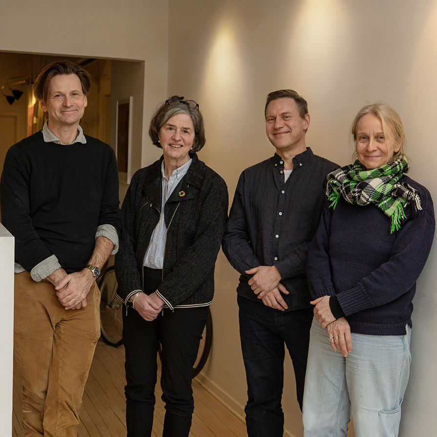 På billedet: Instruktør Sebastian Schiørring, professor Katherine Richardson, mig, billedkunstner Rikke Luther. Derudover medvirker videnskabsformidler Lars Dahl + 9 fremtrædende unge forskere for hver af de ni planetære grænser.